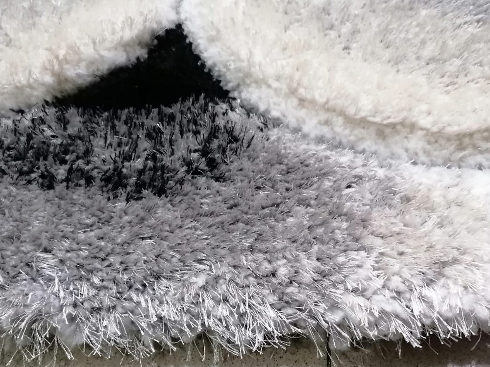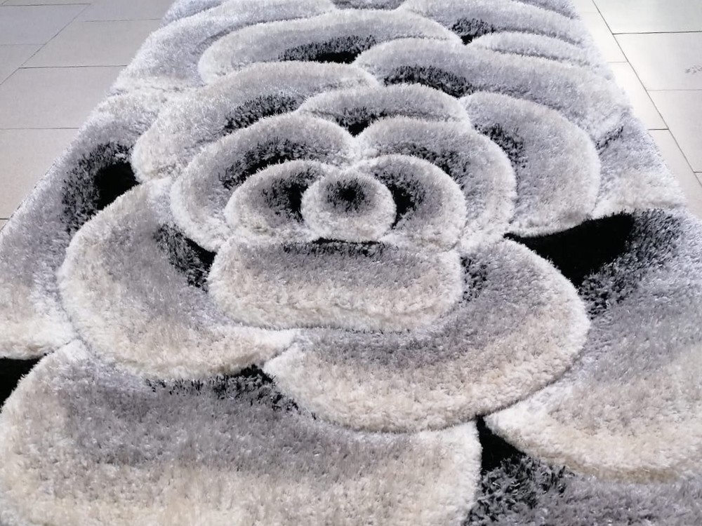Covor modern, țesut cu cu fire lungi și pufoase – Shaggy cu Mătase. Este disponibil în formă dreptunghiulară pe diferite dimensiuni. Firele înalte și pufoase, cu înălțimea de aproximativ 4 cm, și combinația de culori oferă acestui covor un aspect unic și atractiv. Este deosebit de confortabil, moale și plăcut la atingere. Cu forme ieșite în relief. Model cu trandafir.