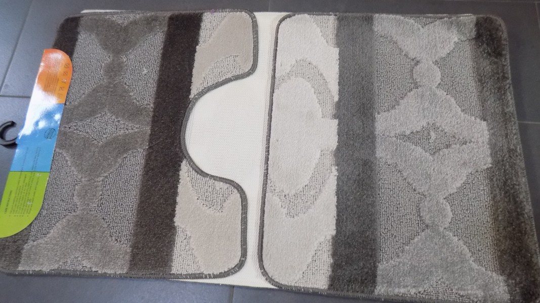 Setul se compune din trei piese dreptunghiulare, material din polipropilena cu textura fină și proprietăți de absorbție excelente. Pe verso suportul este de cauciuc, acesta oferind o fixare mai rapida și o aderență mai buna pe suprafețe gen: parchet laminat, gresie, mozaic, etc. Este ușor de întreținut – măturat, aspirat, spălat. Nuanțe gri.