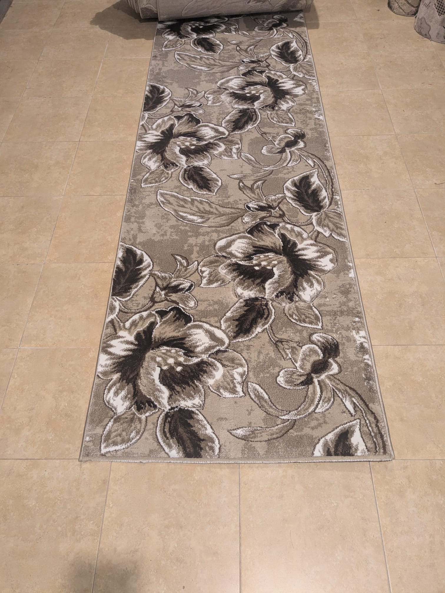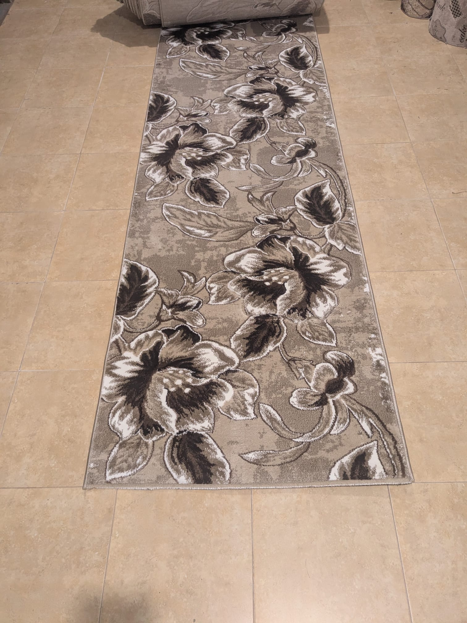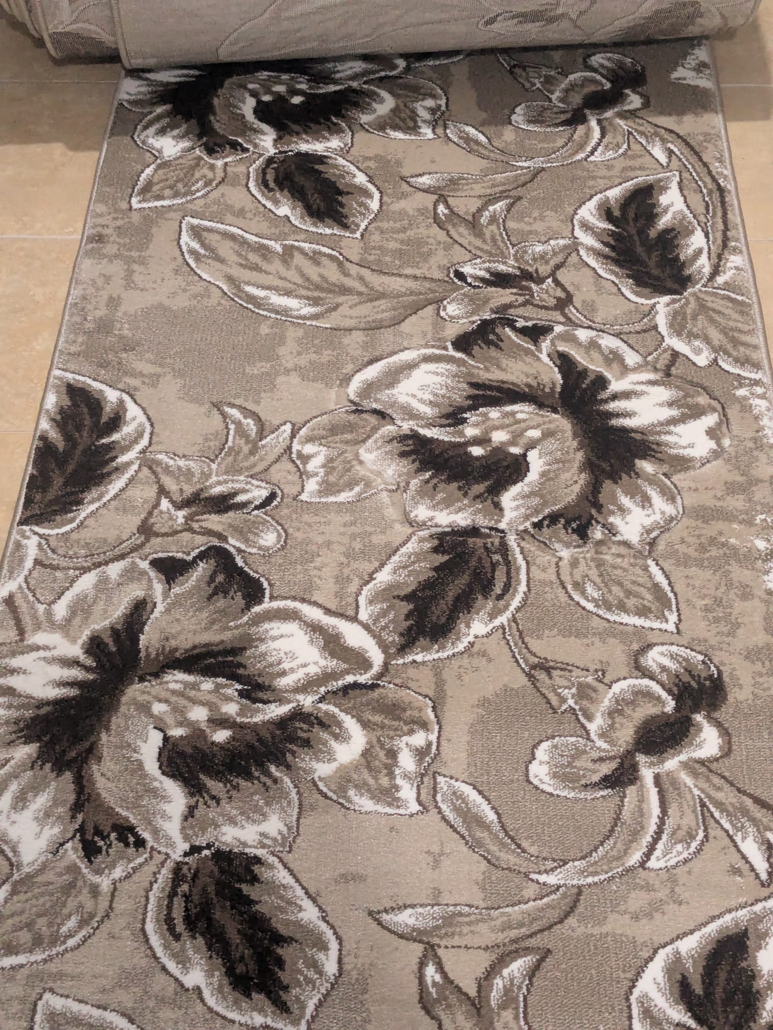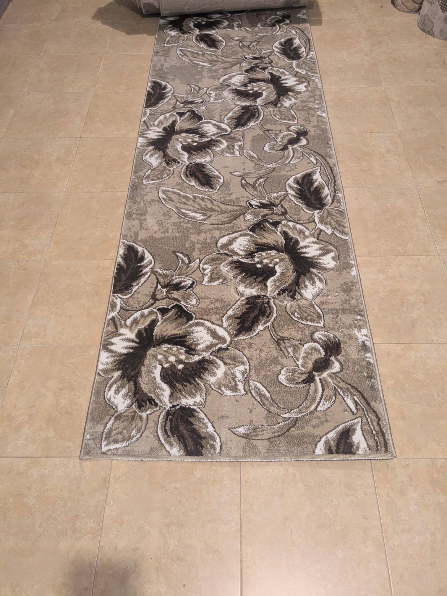 Traversa Imperial BEJ cu Maro – covor țesut cu fire scurte, înălțimea acestora este de aproximativ 20 mm. Moale și plăcut la atingere ușor de întreținut – măturat, aspirat, sau cu aparate de curățat umede. Culori de baza: Maro cu Bej, design floral.